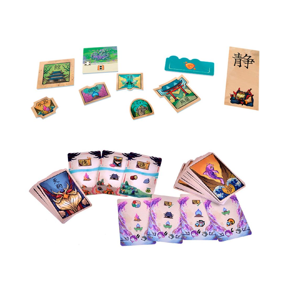 - Добродетель духов. Если игрок в сумме имеет 5 карт ёкаев (на планшете, в колоде, в стопке сброса, на руке), он может навсегда убрать одну из разыгранных в этом раунде карт, чтобы получить за неё очки добродетели (этот этап необязательный)