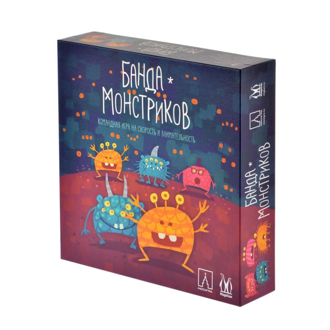 Смешные монстрики-близнецы любят собираться большой компанией и веселиться. Но вот незадача – братья-монстрики потеряли друг дружку в большой толпе. В настольной игре "Банда монстриков" игрокам предстоит помочь незадачливым близнецам отыскать друг друга.