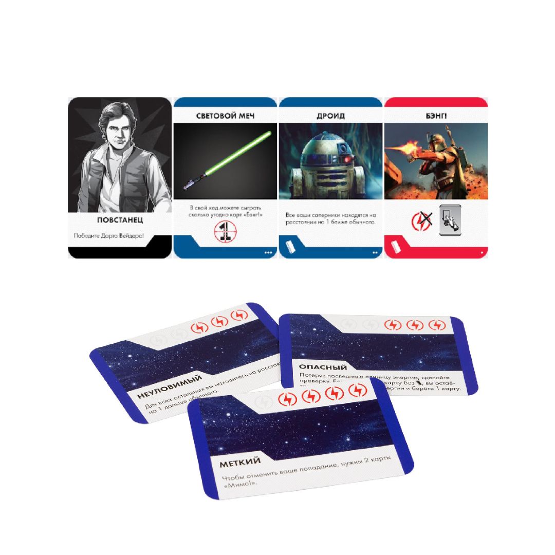 Встречайте популярный настольный спагетти-вестерн "Бэнг!", который теперь даст поклонникам легендарной вселенной "Звёздных Войн" примерить на себя роли героев оригинальной кинотрилогии и от души пострелять в масштабах галактики. Общий сюжет остался неизменным: повстанцы, как всегда, противостоят империи, а кто возьмёт верх, зависит непосредственно от участников игры. Главная "фишка" данного издания – новая игровая механика под названием "Встреча с судьбой".