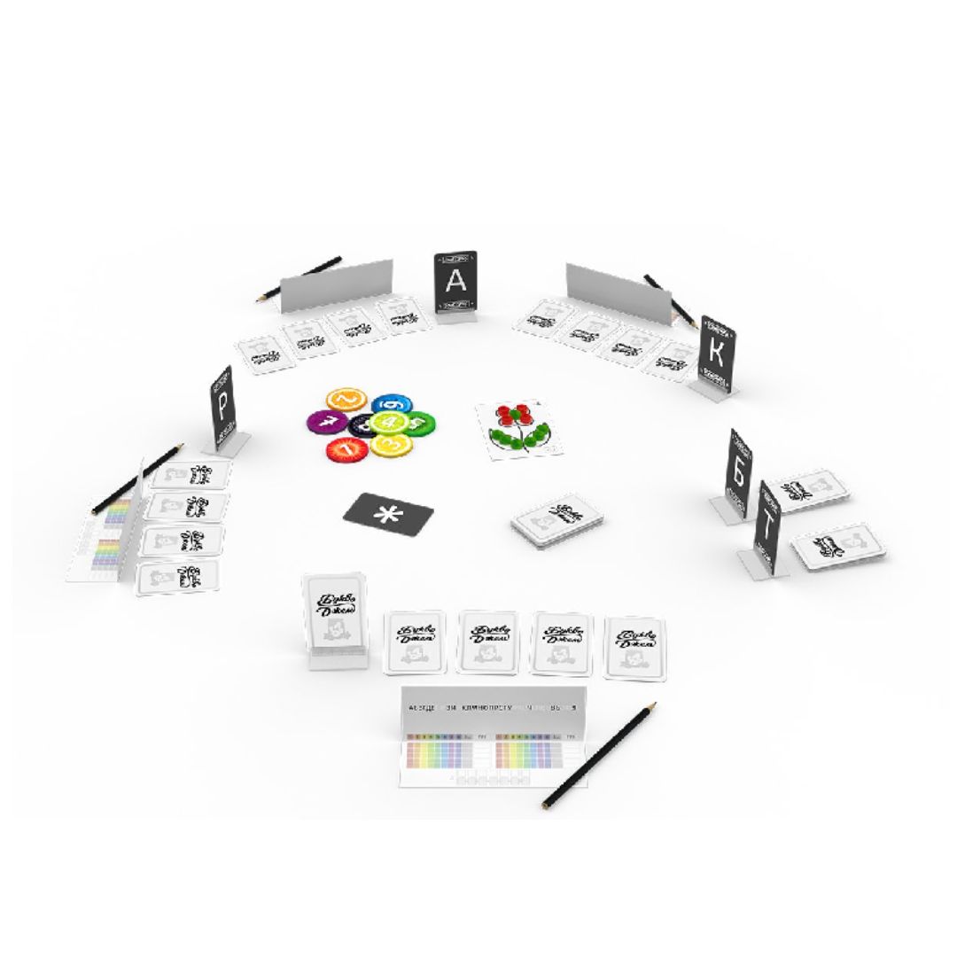 А теперь главный вопрос – можно ли составить из таких букв слово? Ну разумеется! И даже не одно, а целую кучу! Коллективно обсудив, кто из игроков будет давать подсказку, передают право хода выбранному участнику. Тот, в свою очередь, используя красочные жетоны с цифрами, выкладывает их перед буквами, подсказывая загаданное слово. Все остальные пытаются понять, что это за слово и в результате вычислить свою собственную букву. Свои догадки каждый из игроков вписывает в собственный лист. В том случае, если кто-то считает, что вычислил свою букву, он записывает её, после чего кладёт карту лицом вниз и открывает следующую.