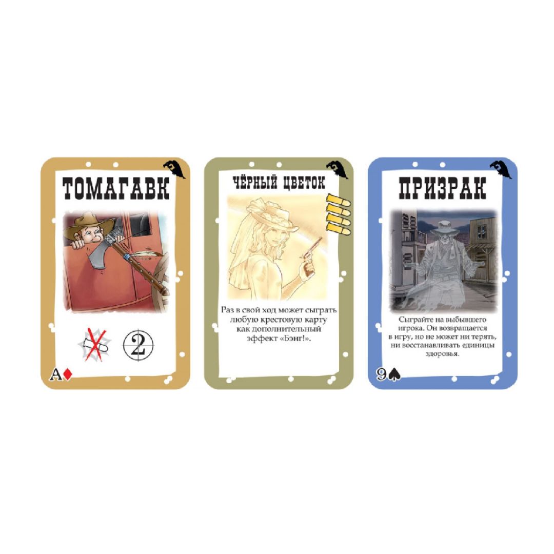 Что уж говорить про новые игровые карты? С ними игра вообще чувствуется совершенно по-новому. Пользуйтесь новым револьвером "Ле Ма" и томагавком, научитесь тщательно прицеливаться, чтобы увернуться от пули было ещё сложнее, назначайте награду за голову и спасайтесь бегством! Подбросьте гремучую змею противнику, чтобы тот терял здоровье несколько ходов! Войдите в торнадо и узнайте, куда оно вас приведёт? И конечно, одна из самых интересных механик дополнения – призрак. Вы можете воскресить любого игрока в обличии призрака, у которого нет единиц здоровья и карт, но в остальном он полноценный игрок! Которого можно будет убить ещё раз!
