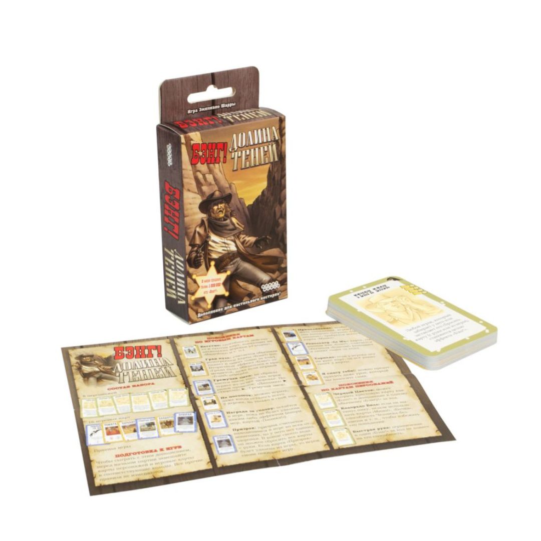 "Долина Теней" – это долгожданная локализация дополнения, которое изначально было доступно лишь игрокам из Чехии и Словакии, ведь оно было создано самими фанатами игры при поддержке автора оригинального "Бэнг". Сами идеи для дополнения предлагались игроками, поэтому каждая новая карта получилась крайне интересной и была протестирована в огромном количестве партий самим игровым сообществом.