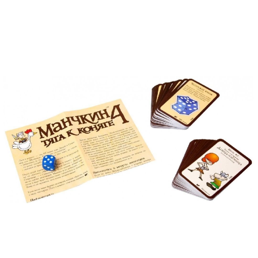 Новое дополнение к настольной пародийной игре "Манчкин" под названием "Манчкин Тяга к коняге" – это 112 свежих карт. Лейтмотивом набора стали скакуны, которые расширяют боевые и бытовые возможности манчкина. Вторая тема набора – наёмнички, которых стало гораздо больше. Кроме того, многие из оставшихся карт также связаны либо с наемниками, либо со скакунами. Поэтому предупреждаем заранее: как и прочие дополнения, "Тяга к коняге" не приспособлена для игры без базового набора замечательной классической настольной игры "Манчкин". Хотя, как и в большинстве игр Стива Джексона, здесь можно поржать с самих карт. Но какой ты манчкин, если Плутониевого дракона голыми ногами не задушишь?