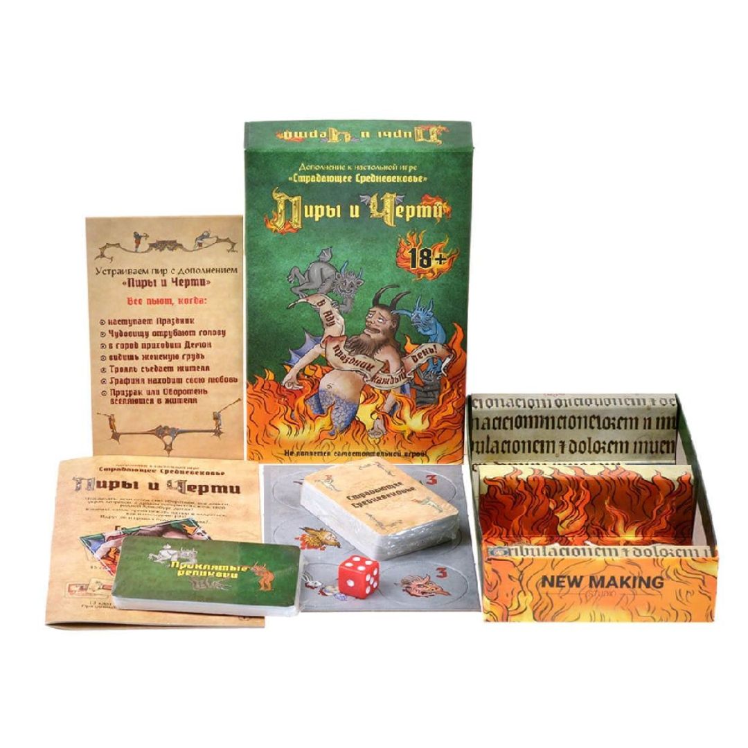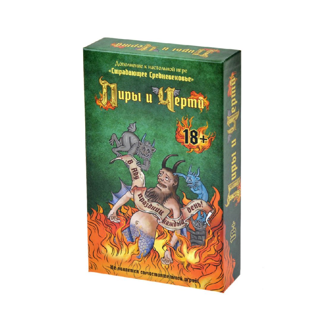 "Пиры и черти" – это второе дополнение для игры "Страдающее Средневековье". Оно совместимо в том числе и с дополнением "Омерзительное Средневековье". Итак, что вы найдёте внутри: