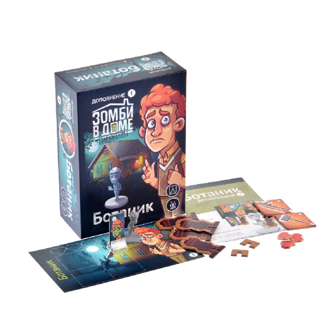 "Зомби в доме: Заражение. Ботаник" – это новое дополнение к базовой игре "Зомби в доме. Заражение". С ним вы сможете играть впятером – с персонажем-ботаником и двумя новыми видами оружия. Преимущество этого героя – скорость. Сколько бы не выпало ходов на вертушке, ботаник ходит больше на шаг. Присоединяйтесь к остальным героям – шансы выжить во время зомби-апокалипсиса повышаются, если действовать сообща.
