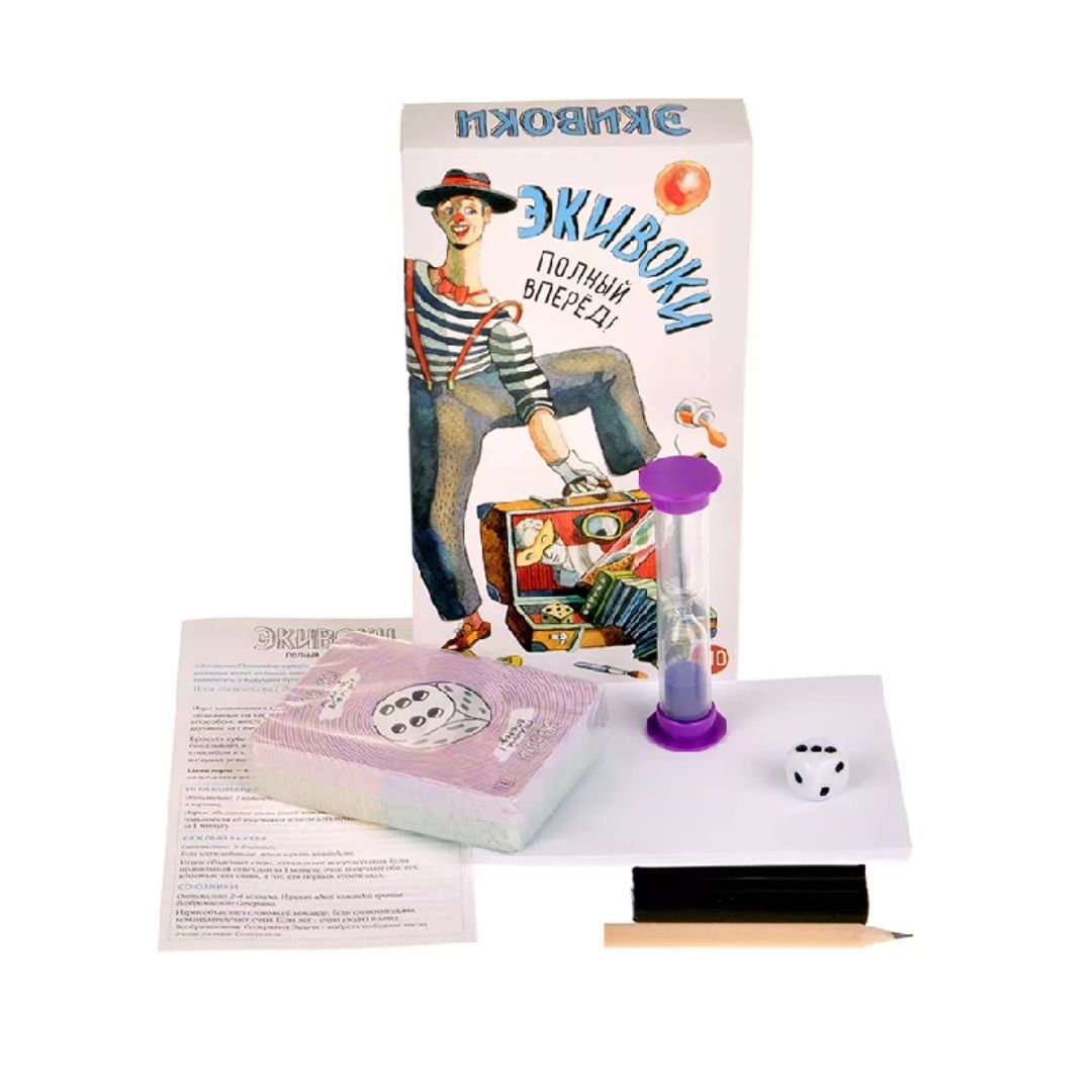 Прошло всего несколько лет с того момента, как настольная игра "Экивоки" появилась на российском рынке настольных игр, и вот уже она по праву занимает своё место в одном ряду с такими хитами, как Alias и Activity. Если вы ещё не слышали о ней, спешите познакомиться – объясняем слова, используя аж семь разных способов! Тут и чтение задом наперёд, и рисование, и даже лепка из пластилина! И глазом моргнуть не успеешь, как прошло уже несколько часов за игрой! "Экивоки" – полностью российская игра, поэтому среди словосочетаний будут встречаться такие знакомые фразы и выражения, которые иностранцу вряд ли объяснишь.