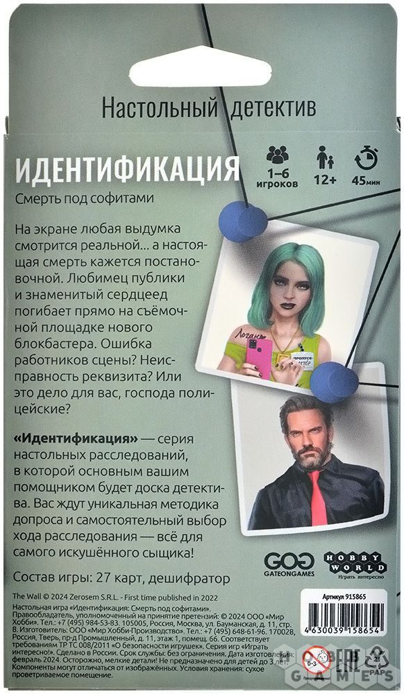 "Смерть под софитами" – ещё одна часть детективной серии "Идентификация", в которой вам предстоит провести расследование. А помощь в нём вам сослужит классическая доска детектива! Вы сами сможете решать, в каком направлении пойдёт расследование, а для самых искушённых сыщиков в игре предусмотрена уникальная методика допроса.