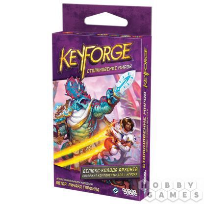 В мире KeyForge всё возможно! В самом центре этого мира подвешена Кузня – созданный искусственно мир, построенный из кусков бесконечного количества планет. В этой игре, созданной легендарным дизайнером Ричардом Гарфилдом, игроки выступают в роли могучих архонтов, которые соревнуются в поисках ключей, открывающих секретные Убежища Кузни.