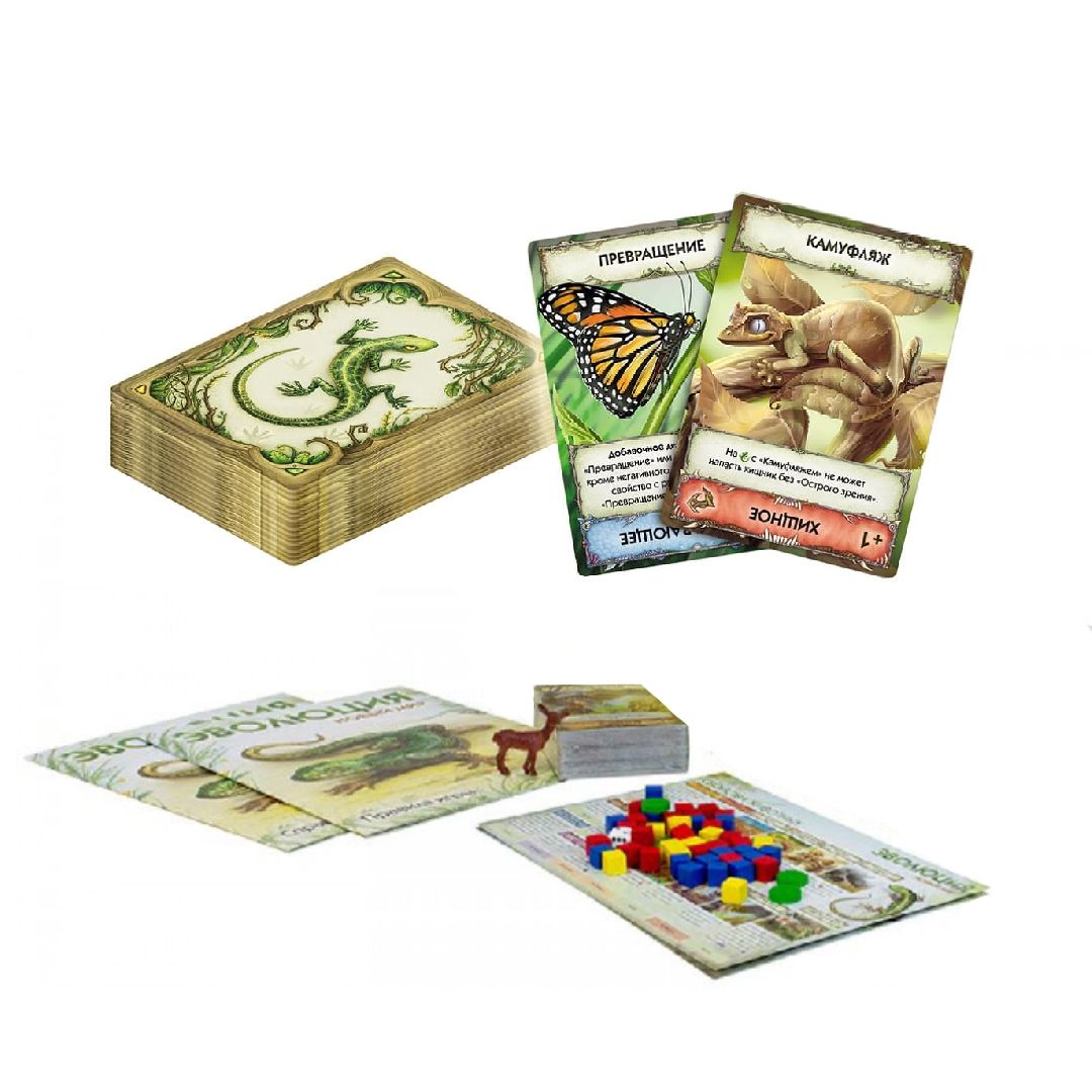 Нашу планету населяют миллионы разнообразных видов: от пугающих глубоководных организмов до мельчайших, еле различимых глазом жучков, питающихся древесными соками. В процессе эволюции каждое живое существо идеально приспособилось к уникальным условиям своего существования, чтобы не конкурировать за более доступные. Те, кто были недостаточно эффективны – попросту вымирали. В настольной игре "Эволюция. Новый мир" вам предстоит занять место отчаянно соревнующихся друг с другом организмов и развивать собственные виды, комбинировать их эволюционные приспособления и добывать им пропитание. Основная цель игры, как и в жизни, заключается в выживании: экспериментируйте, развивайтесь и доминируйте над конкурентами!