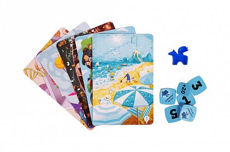 В набор вошли 64 уникальные иллюстрации от наших художников. Других таких же забавных, немного пугающих и заставляющих задуматься, карточек вы не встретите. Просто взгляните на них, и у вас появится миллион ассоциаций! Пять волшебных пегасов станут вашими фишками игроков и проведут по фантастическому миру Имаджинариума.
