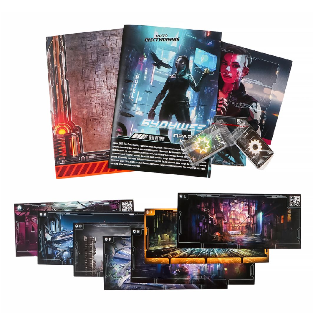 Настолка "Место преступления: Будущее" – новинка из серии игр “Место преступления” в стиле киберпанк. Охотьтесь на преступников в реальном и виртуальном Париже, при помощи имплантов находите нужную вам информацию и раскрывайте заговоры корпораций. Основная задача проста: найти преступника, пока время ещё не истекло!