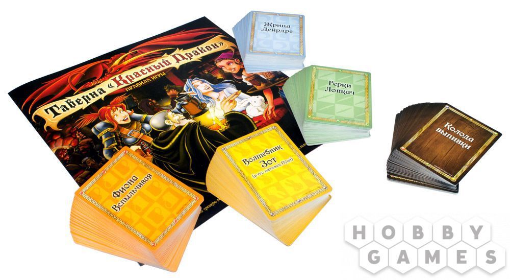 "Таверна Красный Дракон" – это карточная настольная игра для 2-4 игроков в сеттинге классического фэнтези. Однако, вместо того, чтобы отправиться на поиски приключений, мы двинемся прямиком в… таверну! Там и будет происходить весь игровой процесс. Задача игроков – перепить всех остальных, удержаться на ногах, сохранить при этом побольше золота и вообще хорошо отдохнуть! Попутно будем играть в азартные игры, мухлевать и жулить, мериться силой и, конечно, пить всё, что пьётся, от медовухи до эльфийского вина с запивоном!