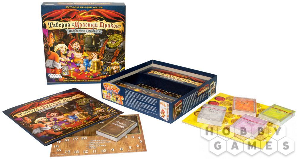 "Таверна Красный Дракон" – это карточная настольная игра для 2-4 игроков в сеттинге классического фэнтези. Однако, вместо того, чтобы отправиться на поиски приключений, мы двинемся прямиком в… таверну! Там и будет происходить весь игровой процесс. Задача игроков – перепить всех остальных, удержаться на ногах, сохранить при этом побольше золота и вообще хорошо отдохнуть! Попутно будем играть в азартные игры, мухлевать и жулить, мериться силой и, конечно, пить всё, что пьётся, от медовухи до эльфийского вина с запивоном!