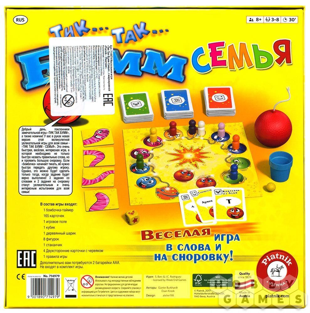 Теперь таймер тикает для всей семьи! Перед вами новая версия взрывной и динамичной игры в слова и навыки, в которую можно играть всей семьёй – "Тик Так Бумм Семья".
