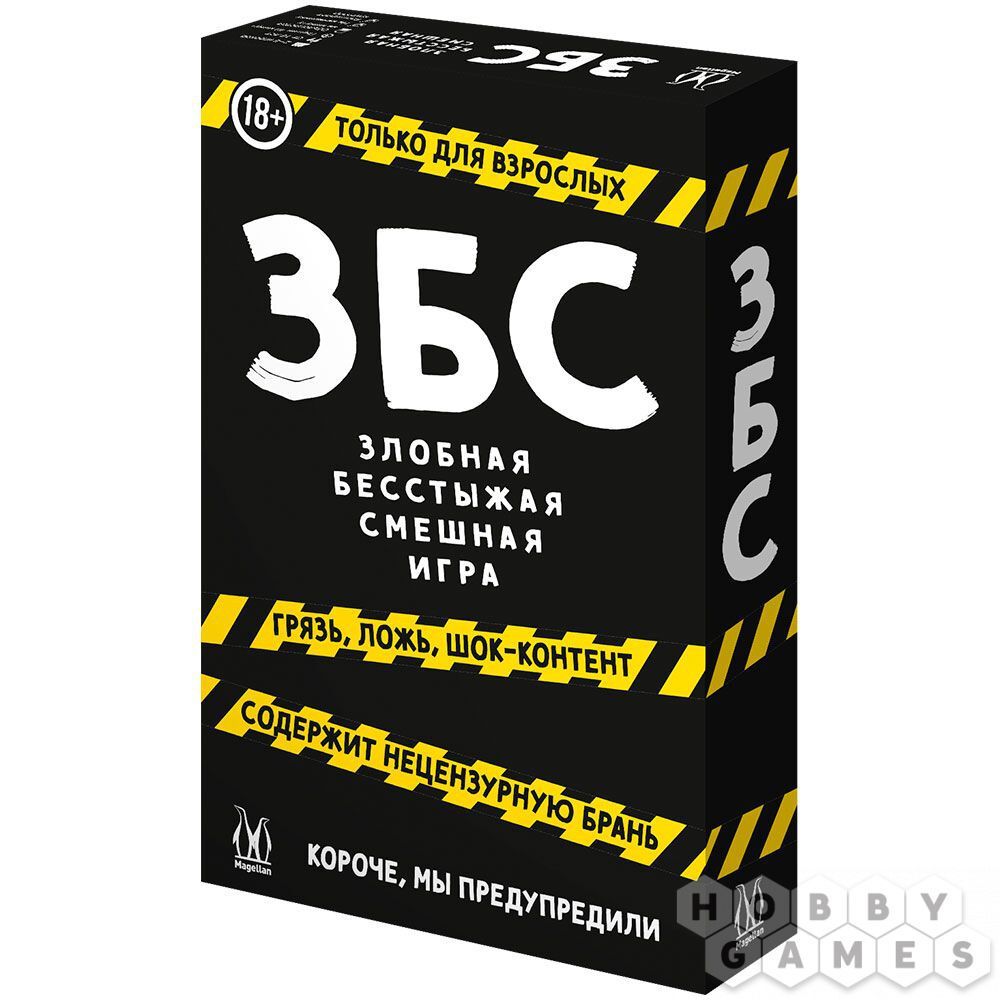 "ЗБС" – это весёлая карточная игра, построенная на блефе, обмане и выдумках. Суть игры проста, как дважды два: на стол в две стопки выкладываются карты, на обеих сторонах которых приведено по 4 факта, связанных общей темой. Каждый игрок берёт одну карту из любой стопки. Факты на карте обозначены своей буквой, где: