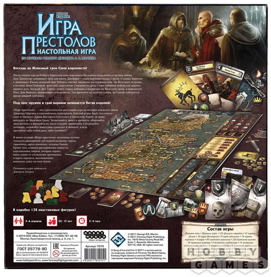 От трёх до шести игроков берут на себя роль великих Домов Семи Королевств Вестероса и начинают свою борьбу за контроль над Железным Троном, используя как дипломатию, так и военную мощь. Игра основана на бестселлере "Песнь Льда и Пламени", серии фэнтезийных романов Джорджа Мартина. "Игра престолов" предлагает настоящий эпический размах, и, чтобы победить, простой военной мощи может не хватить. Вы сможете заполучить власть с помощью силы или использовать ухищрения и лесть на пути к Трону, или, возможно, Вы решите привлечь население на свою сторону? Используя стратегическое планирование, мастерскую дипломатию и умелое распоряжение доступных карт, распространите своё влияние на весь Вестерос!