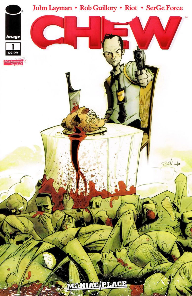 Chew - это замечательный образец черного юмора смешанного с детективом, приправленного неординарным рисунком.Тони Чу - детектив, но у него особенное чутье. Он чувствуют все, что чувствовал съеденный объект. То есть, если Тони съел яблоко, он чувствует, как росло все дерево, как созревало яблоко и как оно отвалилось и упало на землю. Если он ест свинину… ну, в принципе догадаться не сложно, что он чувствует после этого. Какое применение мог найти добрый полицейский таким способностям? Правильно, пожирание трупов преступников!
