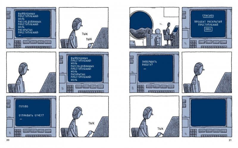 Люди сворачивают колонизацию луны и разъезжаются кто куда. Остаются роботы и единственный полицейский, которому опять отказали в переводе. Взамен к нему отправляют робота-психотерапевта.