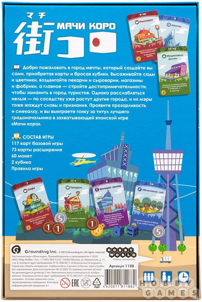 Настольная игра "Мачи Коро" стала абсолютным хитом в Японии и завоевала множество поклонников по всему миру. Её необычный лаконичный дизайн, простые правила и приятный игровой процесс превратят партии в незабываемое удовольствие. Также в игру включено дополнение "Мачи Коро плюс", которое расширит базовую игру и внесёт разнообразие в партии.