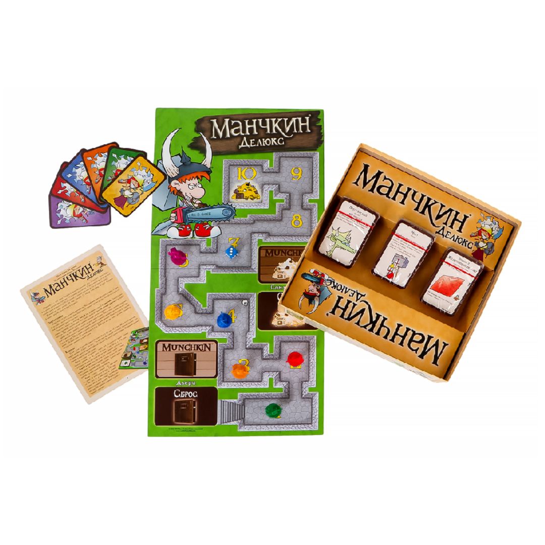 "Манчкин Делюкс" – это лихая пародия на ролевые игры в жанре фэнтези. Здесь не нужно покупать снарягу и заморачиваться с изучением заклинаний. Просто бей монстров и напяливай шмотки. Эльф? Примерь шлем-рогач. Волшебник? Возьми посох напалма. Крепок ногами? Надевай башмаки могучего пенделя! Начни карьеру с уничтожения Огоршённой травы и Сочащейся слизи, чтобы позже, набравшись опыта и наглости, победить в бесчестном бою Плутониевого дракона!