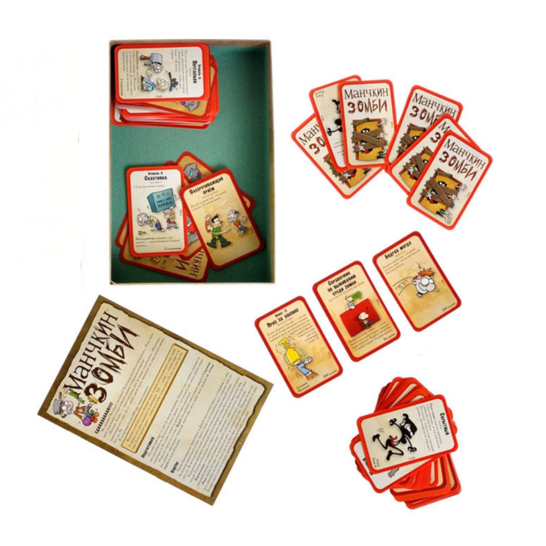 Игра "Манчкин" – локализация настольной карточной игры Munchkin. На русском языке игра, как ни старайся, приобретает новое звучание, но остаётся по-прежнему азартной, динамичной и злорадной. Ролевое зубоскальство по простым, но местами намеренно туманным правилам подвергает насмешкам благородных эльфов, мудрых магов, отважных воинов и мохноногих хафлингов. Клирики бьются с андедами, воры подрезают своих соперников в разгар боя, гигантские Кальмадзиллы и мерзкие Лицесосы стремятся отравить или отнять геройские жизни Ваших манчкинов, но так, на расслабоне, без долгих речей и многочисленных бросков разногранных костей, принятых в D&D, GURPS и прочих равенлофтах. Итак, настольная игра "Манчкин" – это ролевая игра по форме, пародия по содержанию. Манчкины игроков ходят по подземелью, вытаскивают на свет божий тамошних чудовищных обитателей и либо раскаиваются в этом, либо получают за победу новые уровни и сокровища. Исход каждого подобного приключения (боя, короче) зависит от того, кто с чем на бой вышел. У игрока это уровень и бонусы/штрафы от шмоток, класса, расы и проклятий. У монстра это уровень плюс карты-усилители и разовые шмотки. Откуда шмотки у монстра? В Вашем бою могут принять участие и завистливые соперники: они могут помогать монстру и ослаблять вас. Поэтому, хотя в "Манчкин" и можно играть вдвоём, наберите на матч побольше народу: на руках будет больше проклятий, усилителей и зелий, которыми так легко изменить баланс сил в бою в любую сторону, и бдительные завистники не дадут никому из Вас выйти в единоличные лидеры гонки к 10-му победному уровню. При создании "Манчкин" был направлен на молодёжную аудиторию, знакомую с ролевыми играми. Тем не менее, играть в "Манчкин" можно в любом возрасте, кроме совсем уж нежного, в котором некоторые шутки Стива Джексона могут показаться чересчур солёными. А так фэнтези-приключение с мужественными/женственными героями, невероятными ситуациями, неописуемо жуткими невыразимыми монстрами и огромными сокровищницами понравится любому человеку с широким кругозором и здоровым чувством юмора. "Манчкин: Зомби" – самостоятельная игра. Играй в неё как есть или смешивай с другими наборами как душе угодно.