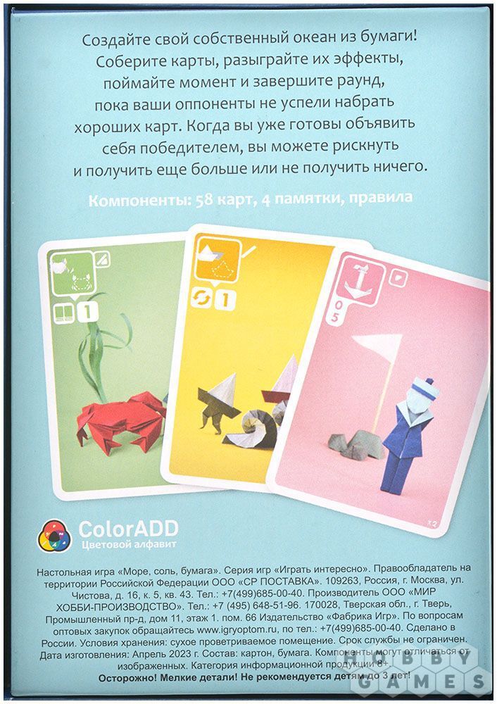 Обратите внимание на дополнения к данной игре: "Море, соль, бумага: Больше соли".