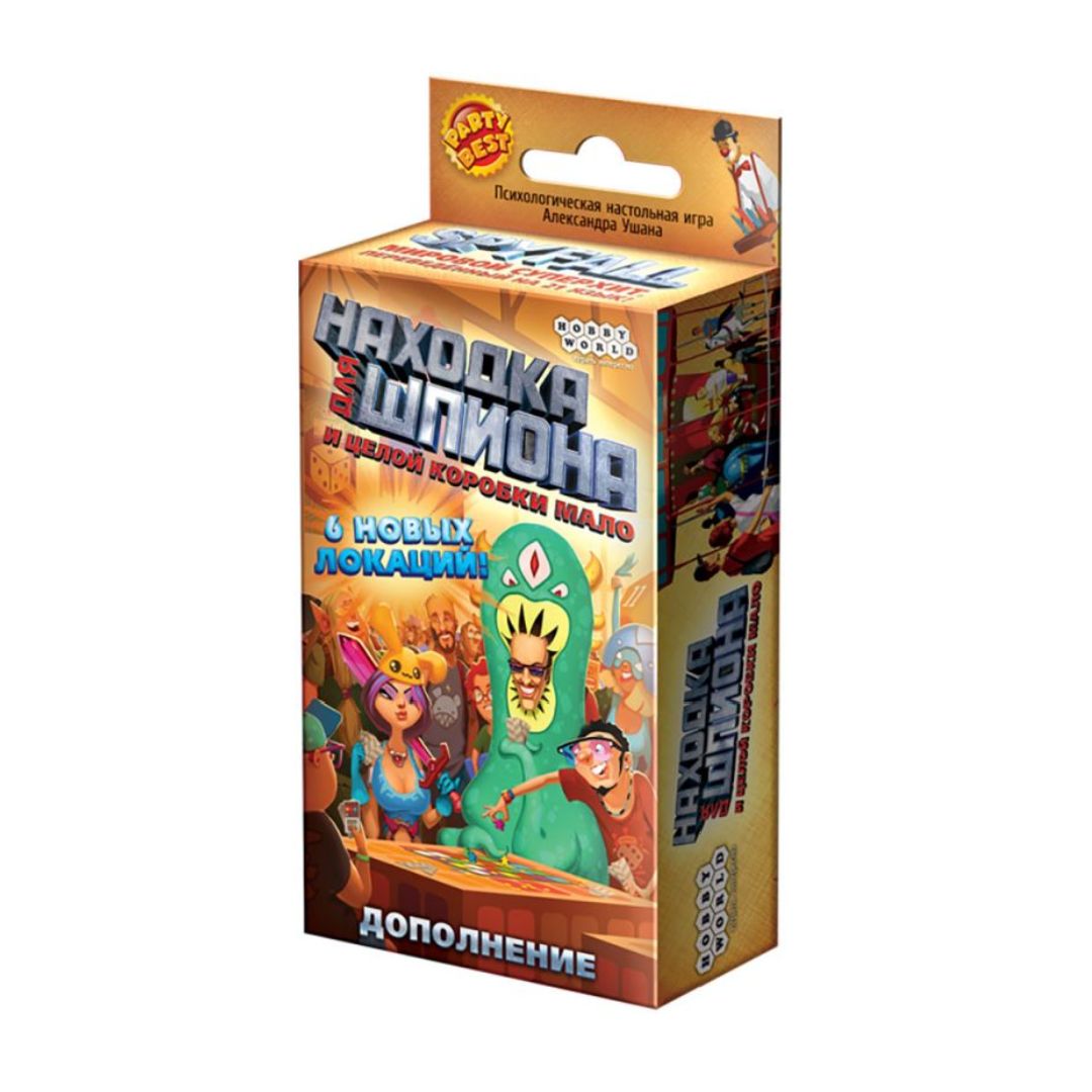 Перед вами первое и несамостоятельное расширение «И целой коробки мало» для настольной игры «Находка для шпиона». Другими словами, для полноценной игры вам обязательно понадобится базовая версия. Дополнение предложит вам 6 локаций (48 карт), среди которых карнавал, зоопарк, ночной клуб и даже выставка настольных игр! Интересные места для шпионажа, не правда ли?! Это дополнение разнообразит и сделает игровые партии гораздо интереснее, привнесёт новые краски в игру для бывалых шпионов, но не станет проблемой и для новичков — чем больше карт, тем интереснее!