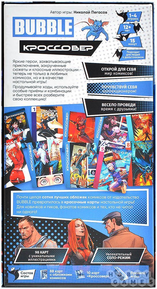 Когда-нибудь смотрели на комиксы и вздыхали, что не можете в достаточной мере насладиться их красочной печатью, шелестением плотной бумаги и крутостью любимых персонажей? Если да – поздравляем, теперь ваши страдания закончатся! Ведь с карточной игрой "BUBBLE: Кроссовер" у вас появится дополнительная возможность прикоснуться к прекрасному – то есть к реально существующим проектам издательства BUBBLE, а вернее – к их обложкам!