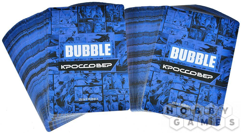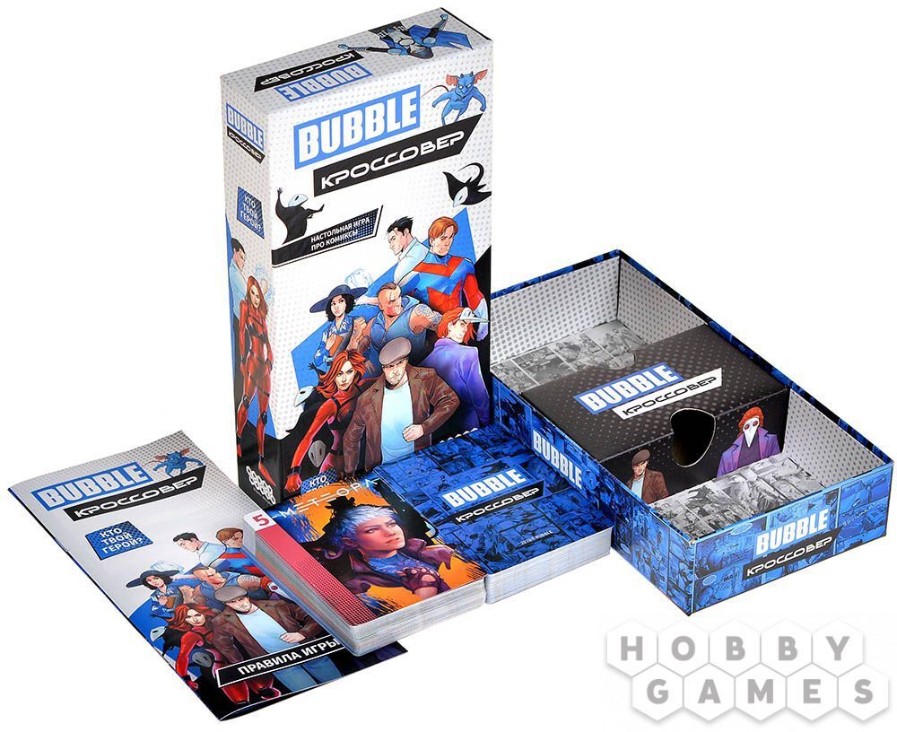 "BUBBLE: Кроссовер" – это игра, созданная в сотрудничестве с известным издательством комиксов BUBBLE, которое подарило миру такие вещи как, например, "Майор Гром" и "Бесобой". В качестве карт здесь будут миниатюры реально существующих обложек комиксов. Вы станете коллекционерами, которые как-то раз встретились и, зацепившись языками, узнали, что разделяют общее хобби – коллекционируют обложки комиксов. Однако каждый из вас не придавал особого значения порядку и просто скидывал их в личную коробку. Настало время для вас разобрать свои закрома и распределить их содержимое в нужном порядке, как и полагается достойному собирателю. А заодно и лишить пары обложек соседа, ведь вам они явно нужнее, чем ему. Только не расслабляйтесь: у него глаза такие же хитрющие, как и у вас, и он уже прикинул, какого комикса ему не хватает, чтобы заполнить свою книжную полку. И по счастливому стечению обстоятельств этот комикс имеется именно у вас...