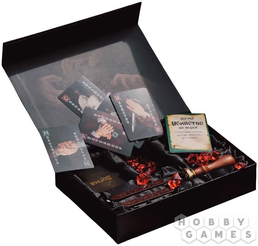 "Догма" – это завораживающая игра, в которой вы и ваши друзья станете кардиналами. У вас за спиной множество грехов, за которые легко попасть на костёр. Поэтому придётся делать всё, что в ваших силах, чтобы обелить себя и подставить своих "коллег" по грешному мастерству. А если вдруг и этого окажется недостаточно, всегда можно просто... изменить священные догмы. Ведь тот, кто сказал, что нельзя вырубить топором написанное пером, был просто недостаточно хитёр – возможно всё, если очень сильно захотеть... Используйте все доступные вам ресурсы, первым избавьтесь от своих карт и наблюдайте, как сгорают на костре ваши менее удачливые – и, несомненно, менее изворотливые – собратья по церкви.