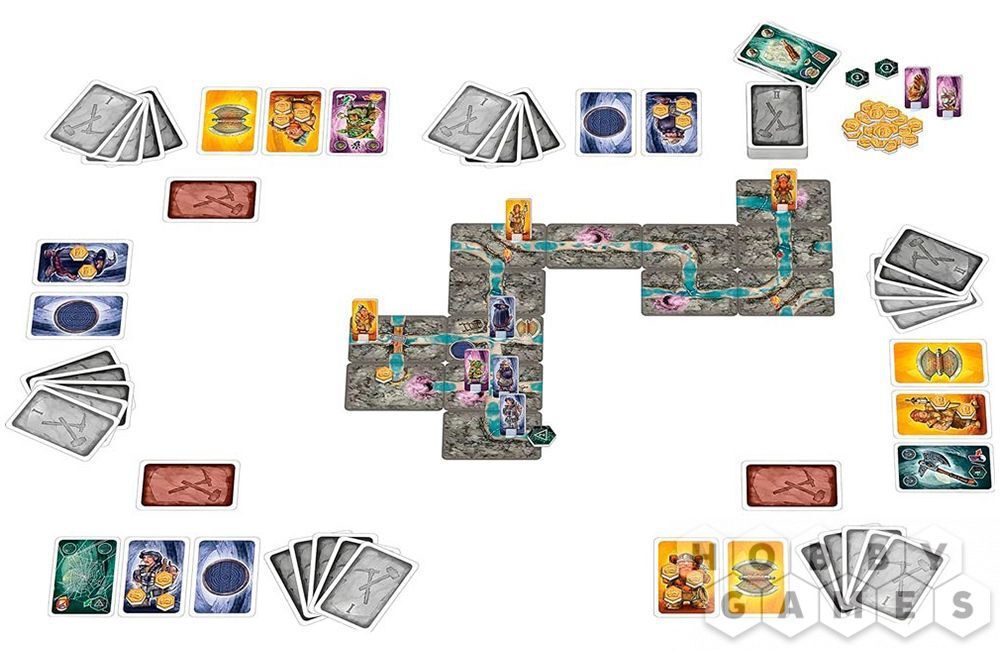 Перед вами "Тёмная пещера" – игра из серии "Гномы-вредители", которая не нуждается в других коробках. Ну, то есть самостоятельная. В ней каждый из вас станет гномом одного из противоборствующих кланов, которые ищут золото в шахтах тёмной пещеры. Казалось бы, ударь киркой, найди руду, возьми и шагай на выход, но нет! Только-только вам удаётся раздобыть драгоценный метал, как шахта тут же начинает затапливаться! Найдите выход как можно скорее, пока вода не перекрыла вам дорогу наружу!