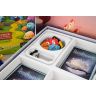 В обновленной версии «Имаджинариум Добро» появился удобный пластиковый ложемент с кладовыми для колод и специальным закрывающимся отделением для фишек. Мы сделали поле съемным и вынесли на него подсказки по подсчету очков, чтобы сделать игру еще приятнее. Также в новой версии появились нумераторы — специальные жетоны, помогающие разложить карты по порядку и облегчающие голосование. Крылатые слоники, впрочем, остались прежними: яркими, веселыми и прозрачными, словно леденцы.