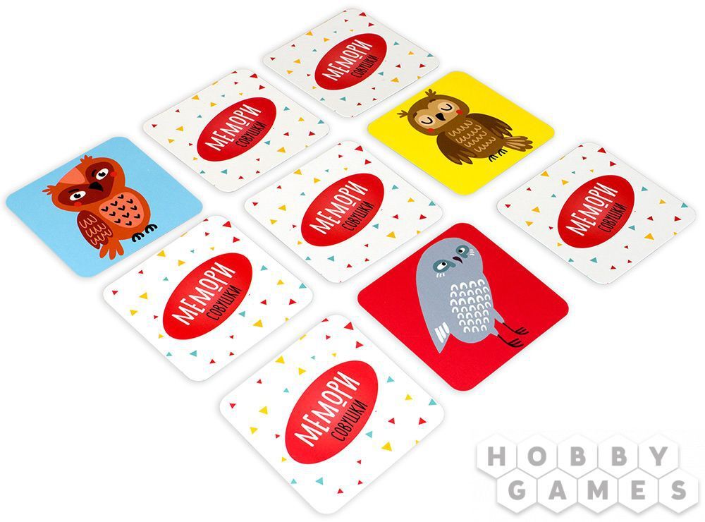 "Мемори Совушки" – это полезная игра для всей семьи, развивающая зрительную память, внимательность и восприятие. Является классической игрой-обучением с интуитивно понятными правилами. От других подобных игр она отличается великолепным оформлением. Здесь каждая совушка имеет свой характер.Играют в неё быстро и непринуждённо. Карточки замешиваются и выкладываются так, чтобы никто не видел какие на них изображены совушки. Первый игрок переворачивает две карточки. Если совушки на них идентичны, он берёт их в руку и переворачивает две новые карты. А если совушки разные, то необходимо вернуть карточки на свои места и передать ход сопернику. Передача хода осуществляется по часовой стрелке. Побеждает тот, кто соберёт одинаковых картинок больше, чем другие игроки.