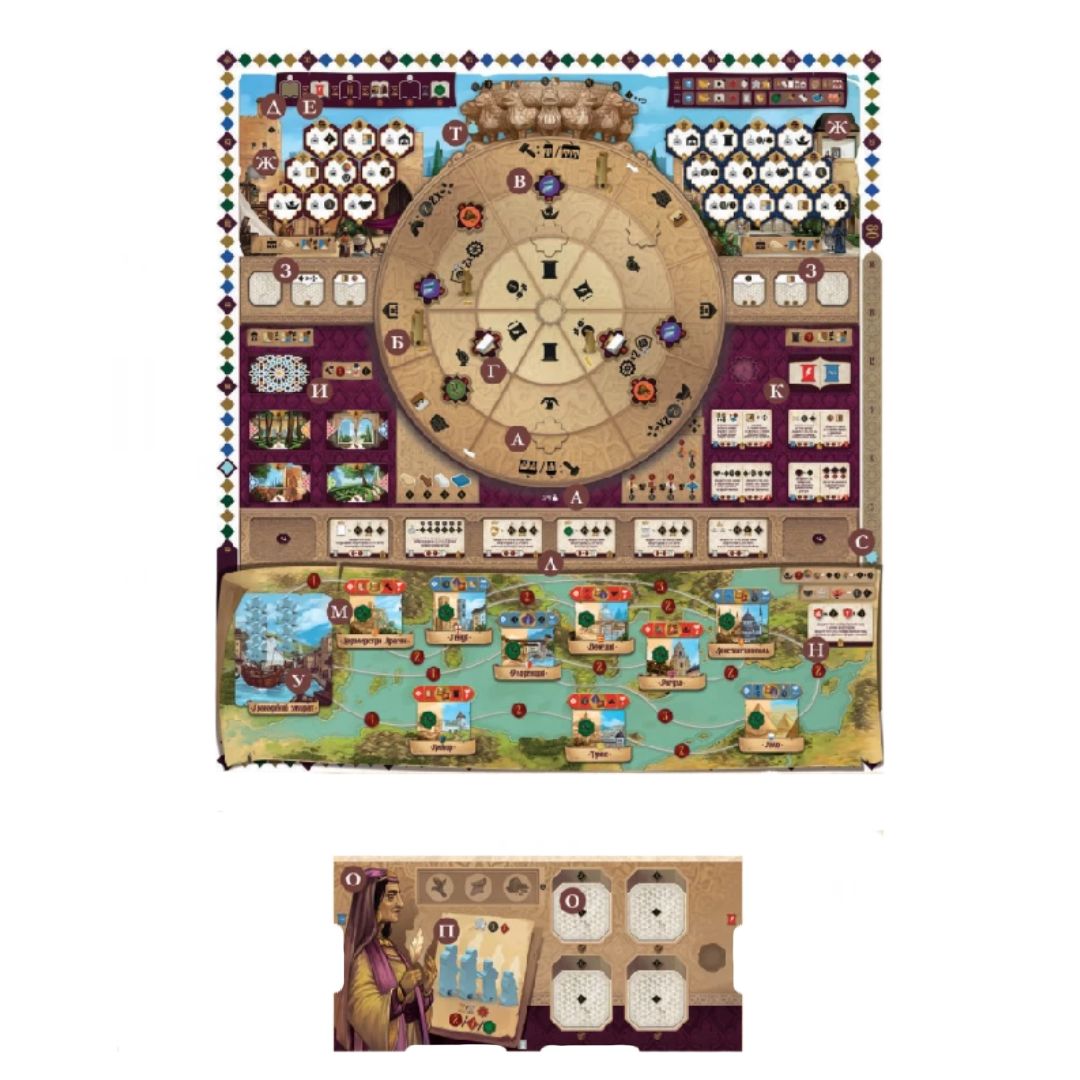 «Сабика» — классическая евроигра со свежей механикой трёх взаимосвязанных ронделей, каждый из которых отвечает за отдельный игровой аспект. Благодаря этому вам предоставляется большой выбор планирования и путей развития, а следовательно,