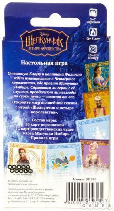 "Щелкунчик. Четыре королевства" – это простая рождественская игра для всей семьи! Она прекрасно подойдёт для игры с детьми и для спокойного досуга. Правила игры осваиваются буквально на лету. Игра наполнена праздничным настроением, знакомыми персонажами из диснеевской адаптации балета Петра Ильича Чайковского, волшебством и запоминающимся дизайном!