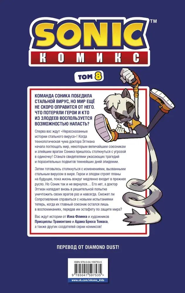 8-я часть приключений СоникаСледите за новыми приключениями сверхзвукового ежика в новой серии комиксов о Сонике! Абсолютно оригинальные сюжеты, не повторяющие ни сериал, ни полнометражный фильм, гарантированно привлекут внимание юных читателей!