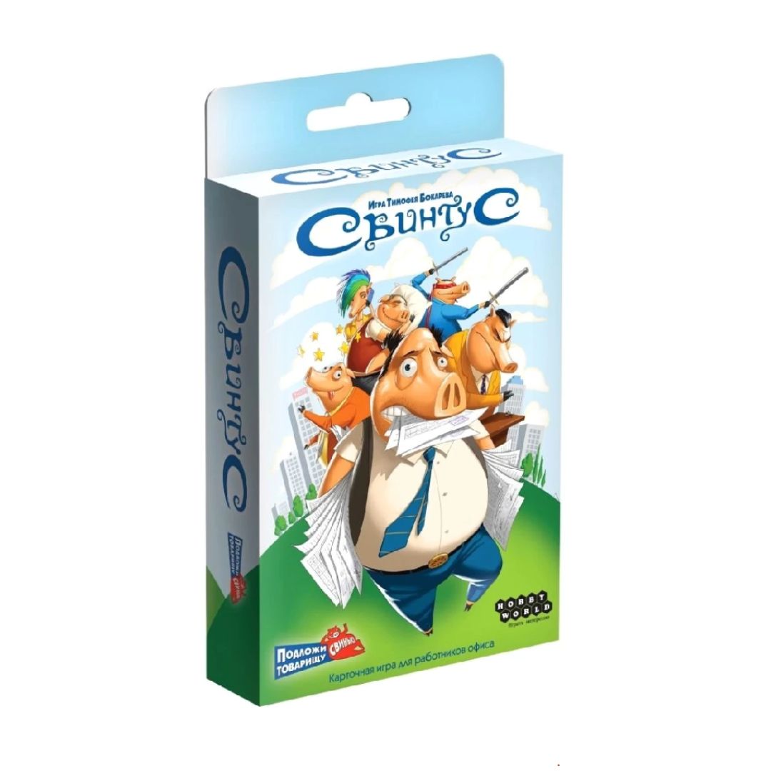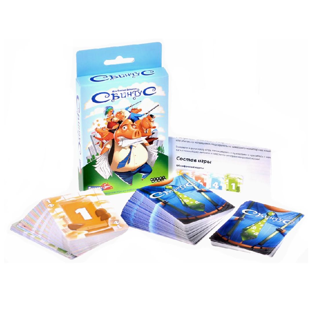 Настольная игра "Свинтус" – это весёлая и быстрая карточная игра для любой компании от 2 до 10 человек. Игра подойдёт детям, но в неё интересно играть и взрослым. В неё можно играть дома, в кафе или в дороге – "Свинтус" прекрасно скрасит ваш досуг. Простые правила, яркий и милый дизайн, динамичный игровой процесс – эти особенности превратили "Свинтуса" в настоящий хит! Хотя сама игра и полностью карточная, тем не менее в ней вам пригодятся даже такие навыки, как хорошая реакция, рефлексы, внимательность и память. Ну и, конечно, компания товарищей, готовых как следует поразвлечься!