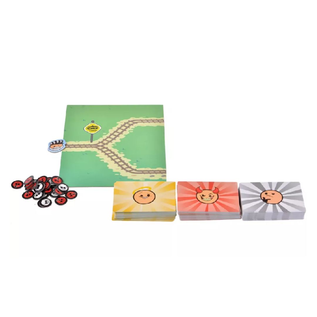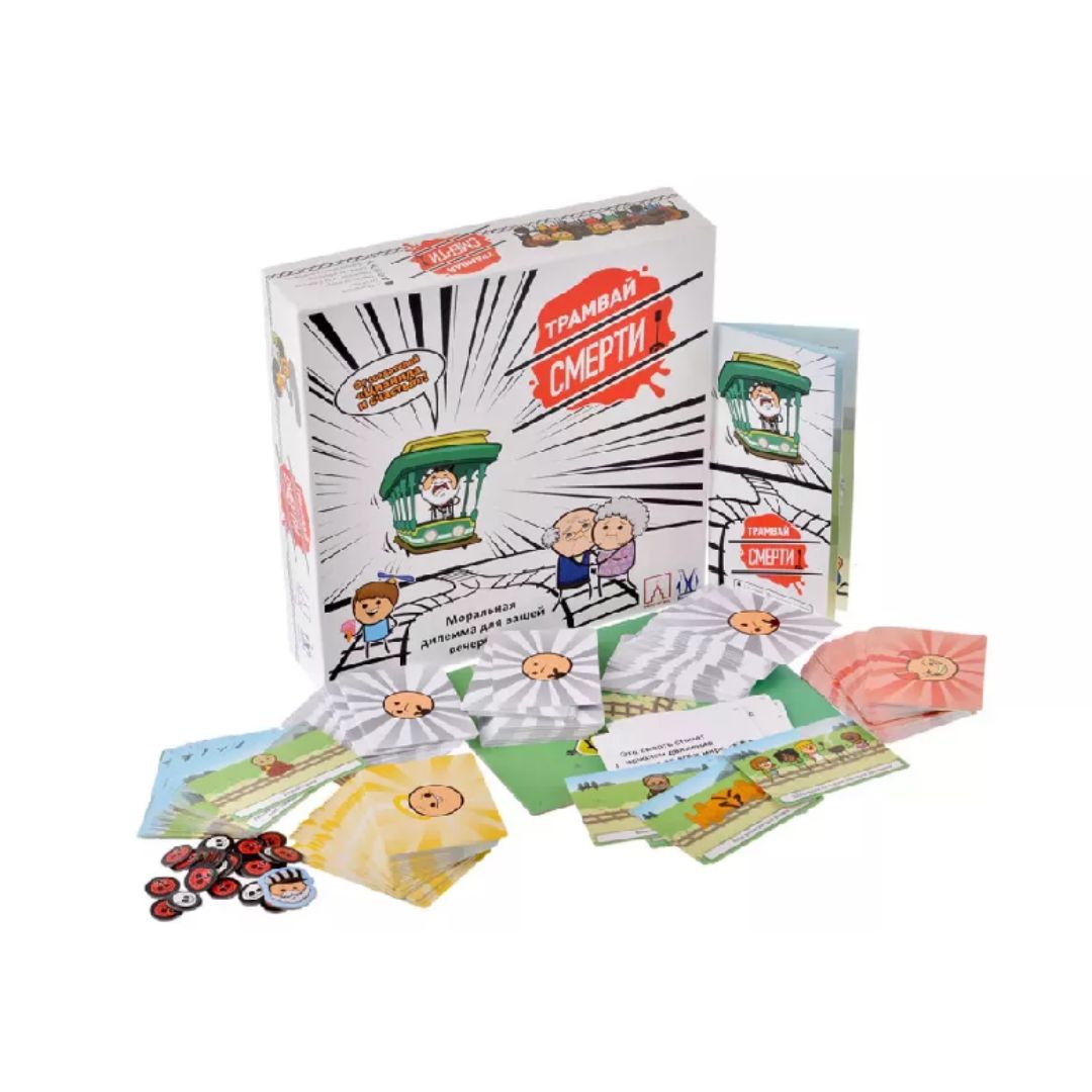 Игроки в настольной игре "Трамвай смерти" делятся на две команды и стрелочника. Участники противоположных отрядов выкладывают на свои пути добряков, негодяев и особый секрет, который может разоблачить хорошего персонажа или оправдать злодея. Когда все персонажи уже на рельсах, команды любыми доводами уговаривают стрелочника пустить состав по дороге следования противника. После того как ведущий выбрал для себя меньшее зло, проигравшие игроки берут жетон смерти. У кого к концу игры их будет меньше всего, тот и победил. Все за игру успеют побывать в роли ведущего. У руля трамвая смерти будет каждый!