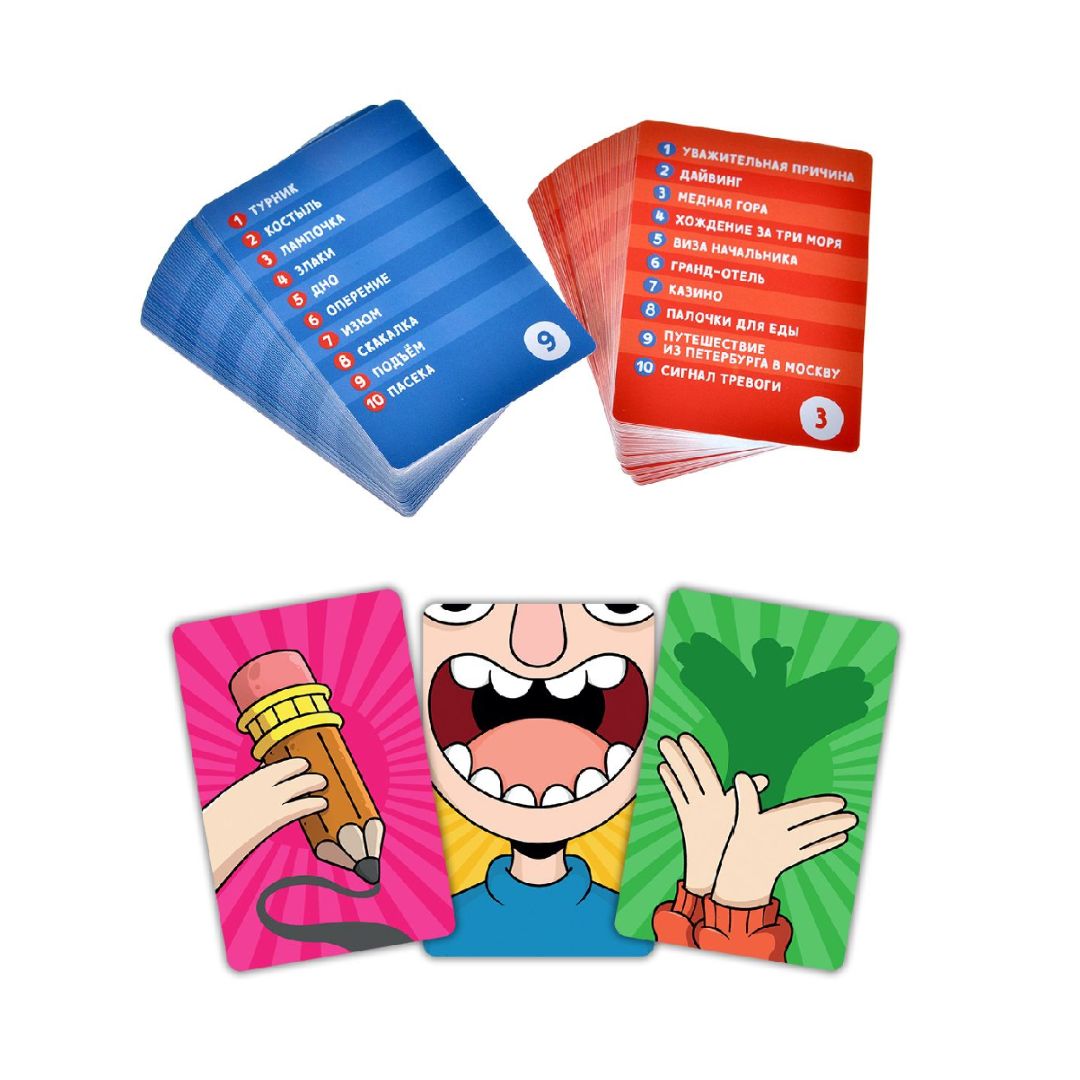 - Разная сложность. Надо заранее договориться, по каким карточкам играть – с простыми или сложными заданиями. Если хотите бросить себе вызов, то выбирайте сложные! Тогда вас ждут избушка на курьих ножках, вокально-инструментальный ансамбль, слесарь третьего разряда и ещё много прочего! Уйма смеха вам обеспечена!