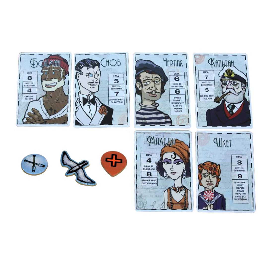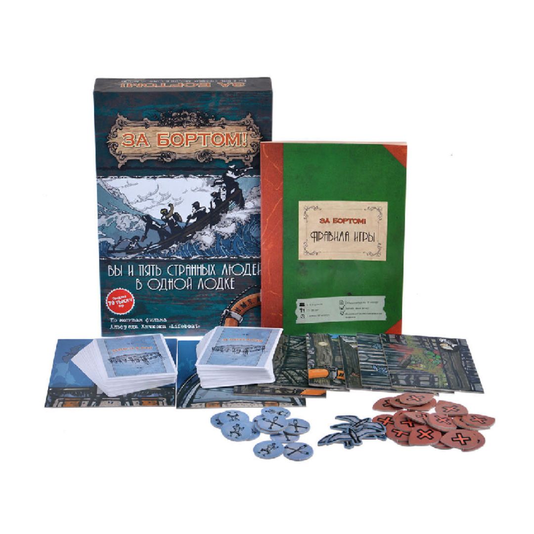 Настольная игра "За бортом". В коробке Вы найдете 6 игровых карт: припасов, персонажей, ролей, врагов, друзей и навигации, а также, различные жетоны и части лодки. В игре "За бортом" вы принимаете на себя роль одного из бывших пассажиров потерпевшего крушение судна. Каждый обладает различными параметрами и полезными навыками. Именно они должны помочь выжить в лодке, договариваясь, кооперируясь или просто с помощью силы выталкивая соперников за борт. Умело ведите переговоры и пользуйтесь своими свойствами, чтобы оказаться в числе добравшихся до берега. Каждый ход это один день в море. Садитесь на вёсла, раздавайте припасы, деритесь за лучшие места и договаривайтесь с остальными в лодке только так можно выжить. Помогайте другу и подставляйте врага, чтобы набрать победных очков, но помните: вы тоже чей-то заклятый враг.Комплектация: 42 карты припасов; 6 карт персонажей; 6 карт ролей; 8 частей лодки; 6 карт врагов; 6 карт друзей; 24 карты навигации; 12 двухсторонних жетонов усталости; 4 жетона чаек; 24 жетона ранений; 6 плашек лодки; нос и корма лодки; правила игры.